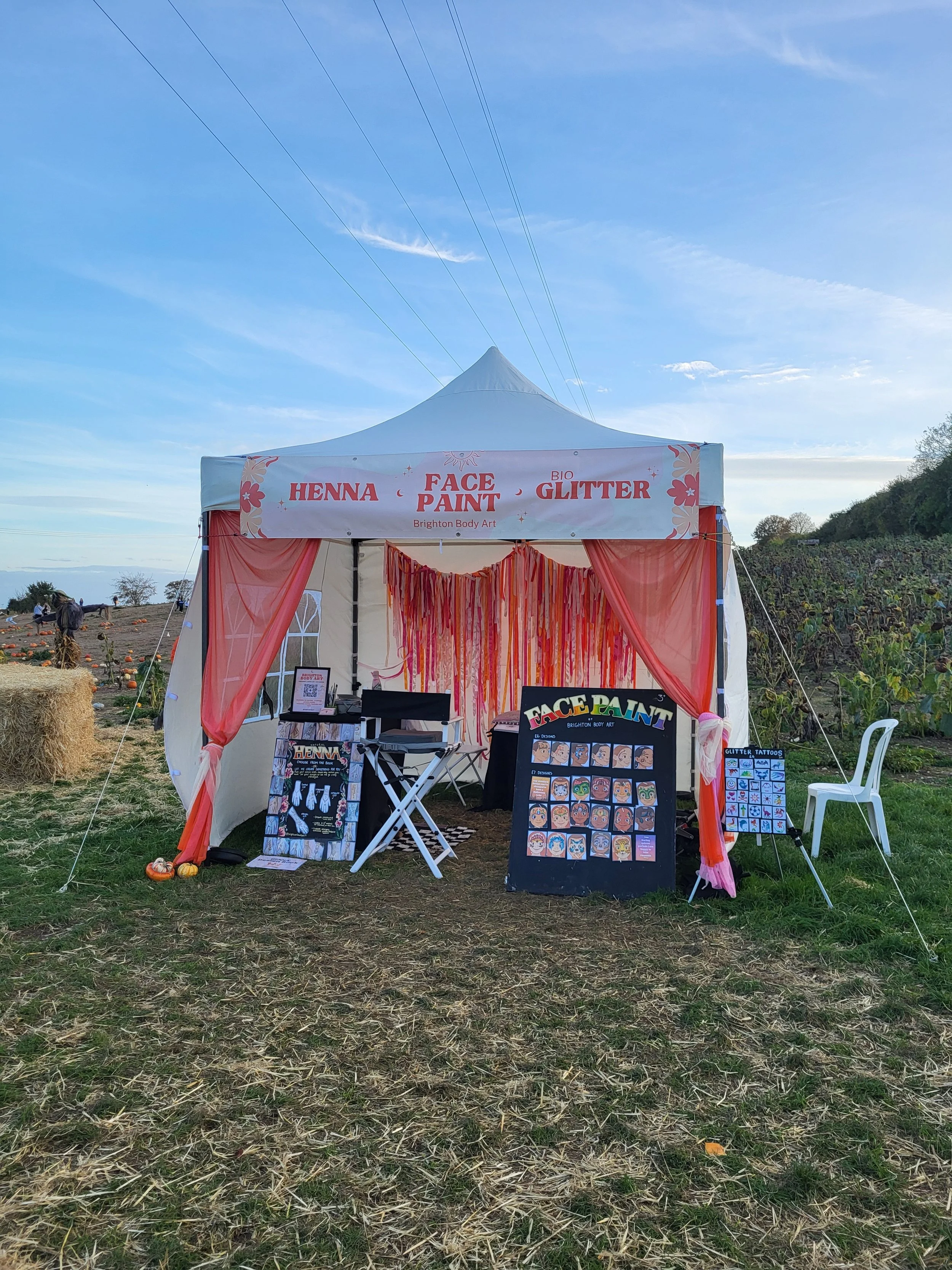 A combination of services can be offered for your event, including face painting, henna and glitter tattoos.